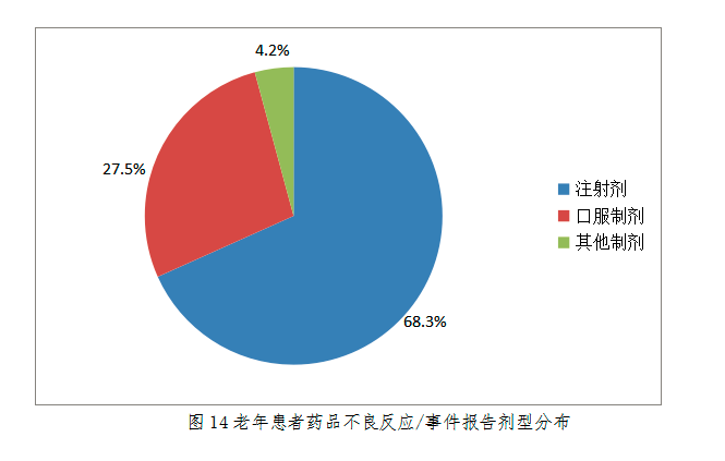 從2018年的統計數據看,在藥品分布上,老年患者用藥的化學藥品中,電解質、酸堿平衡及營養藥、心血管系統用藥、神經系統用藥的構成比高于化學藥總體報告中該分類的構成比,提示老年患者使用以上藥品較多,不良反應發生情況較多。